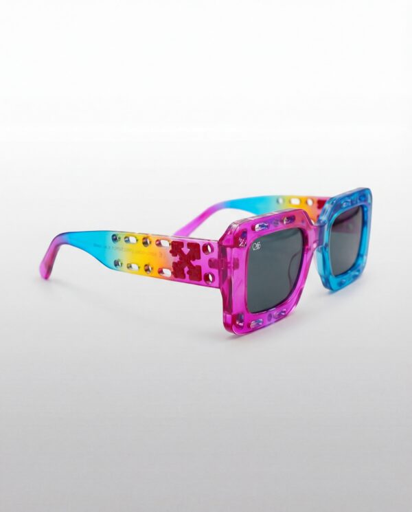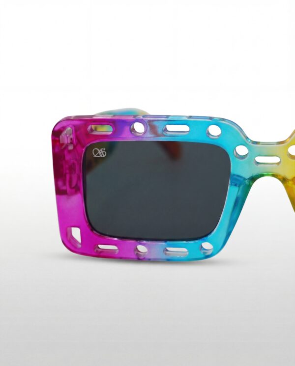 Les Spectrum Pop sont une déclaration visuelle. Leur monture rectangulaire oversize en acétate translucide multicolore — du fuchsia au cyan, du jaune à l’orange — dégage une énergie brute et festive. Les perforations décoratives sur toute la monture ajoutent une dimension streetwear audacieuse et avant-gardiste.